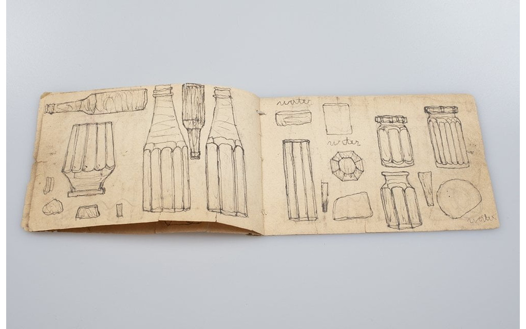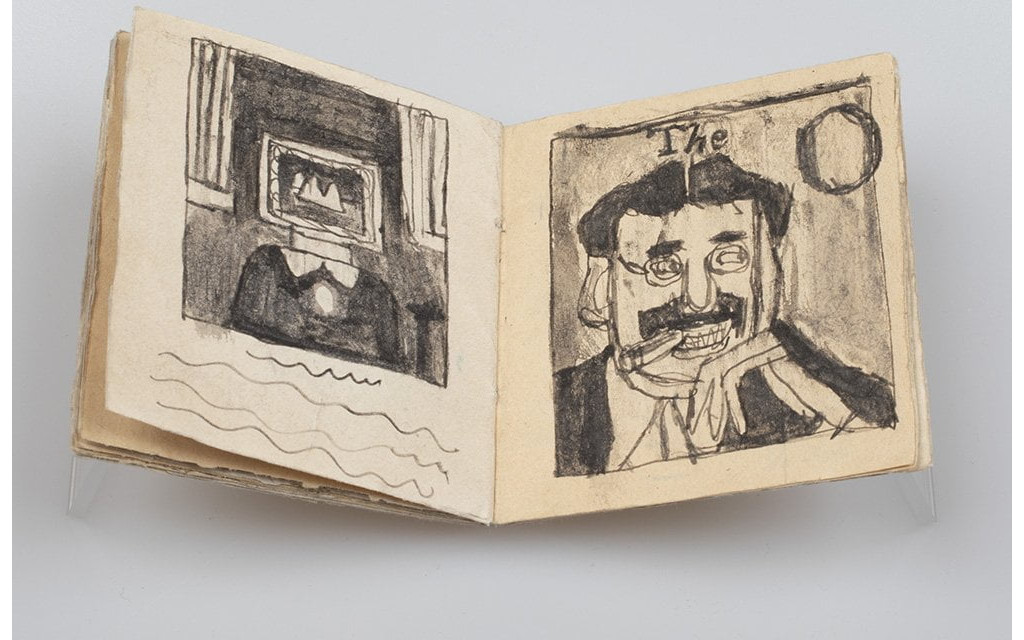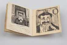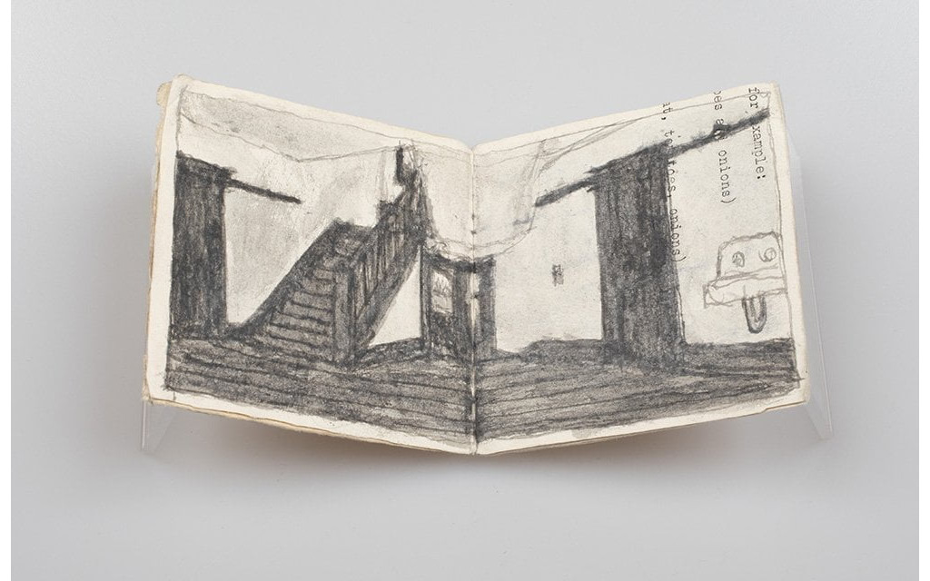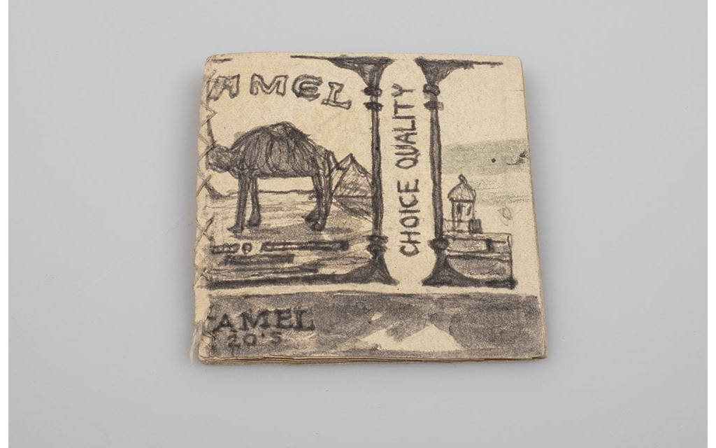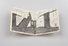« James Castle, Untitled (CAMEL) 12 pp., n.d.; found paper, soot, string, n.d. 3 1/4 x 3 1/8 inchesOutbuilding in Farmscape »