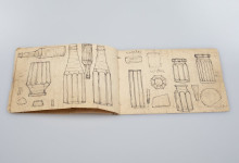 The boxed letters in this book bear a strong resemblance to the typeface used in printing presses during Castle’s lifetime. He also drew them backwards; possibly simulating how they would be set for a press. He likely encountered a printing press while attending the Idaho School for the Deaf and the Blind, as they were a common vocational tool for students.