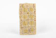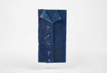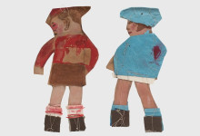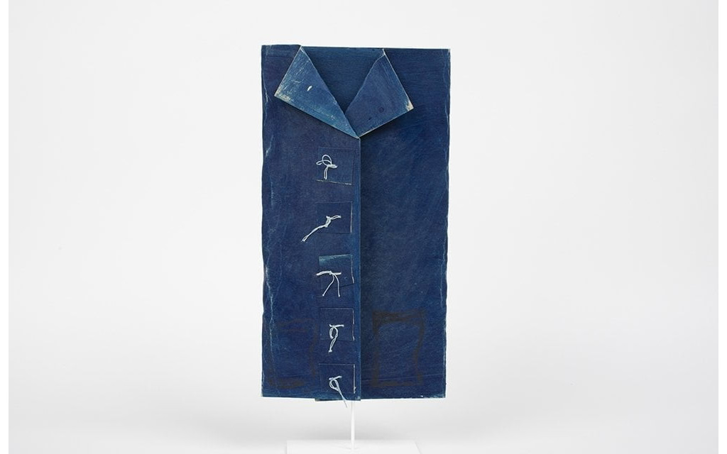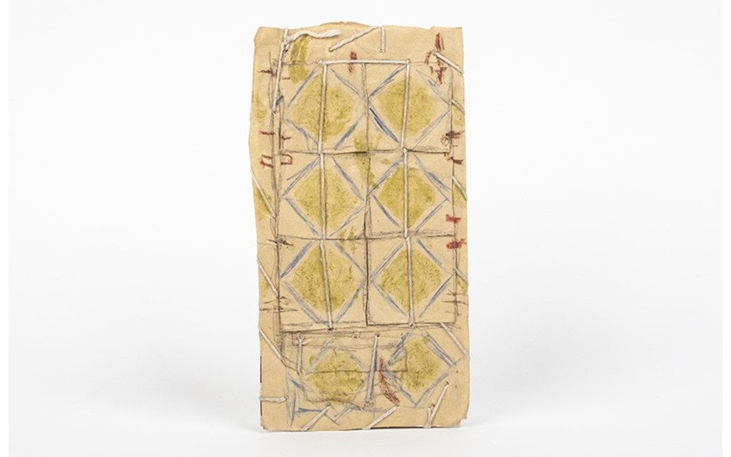 « James Castle, Untitled (patterned form) found paper, color of unknown origin, wheat paste, string, n.d. 7 1/8 x 3 3/4 inchesJames Castle, Untitled (coat) n.d. found paper, color of unknown origin, string, 13 x 6 7/8 inches, CAS09-0717 »